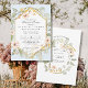 Este conjunto de convites apresenta uma paleta colorida contemporânea de azul-ovo-de-Robin pálido com ouro quente, cor-de-rosa-pessegueira e verde-prateado acinzentado. Um jardim e matas selvagens juntaram design floral foi pintado em aquarelas. Detalhes de medição do chá e da noiva no lado oposto. Direitos autorais, Audrey Jeanne Roberts.