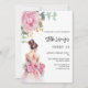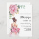Um convite moderno, na moda e glamouroso para um doce 16. Um fundo branco decorado com uma rosa grande rosa, uma garota vestindo um vestido de bola. O nome é escrito com um moderno estilo escrito à mão. Personalize e adicione os detalhes da sua festa.