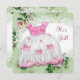 Bonito vestido cor-de-rosa e flores de primavera, cor-de-rosa e convite para chá de menina verde. Este elegante convite de chá de fraldas rosa e verde é facilmente personalizado para o seu evento simplesmente adicionando detalhes do seu evento, estilo de fonte, tamanho de fonte e cor e texto.