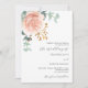 Um fundo branco chic. Decorados com folhas de eucalipto florais, verdes e de cor rosa, de cor aquosa, de galhardetes, de verde e de ouro falso. Personalize e adicione seus nomes e detalhes do casamento. Letras negras. Traseiro: cor verde de fundo sage.
