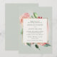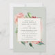 Bonitos convites para o casal moderno com um buquê floral romântico de aquarela em design de papel verde. Uma borda quadrada de folha de ouro falsa no centro da carta mantém os detalhes do seu casamento em uma fonte de bloco moderno em uma tinta verde escura coordenada. O verso do convite é um design de coordenação do livro verde.