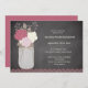 O Chá de panela Dusty Rosa Floral Mason Jar apresenta um jarro de pedreiro cheio de rosa poeira empoeirada, e flores de creme num fundo estilo chalkboard. O convite faz parte de uma coleção. A parte de trás do convite apresenta o seu código QR.