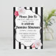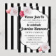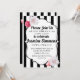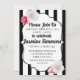 Este convite é muito chique e feminino. As listras pretas e brancas dão ao design um toque moderno e parisiense, enquanto as rosas o tornam delicado e feminino. Este convite é perfeito para aniversários, quinceaneras, chás de bebê e uma variedade de ocasiões especiais.