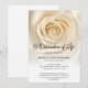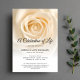 Convite à memória funerária, com uma foto de rosa branca marfim, convidando a celebração de um modelo de vida fácil de personalizar.