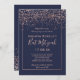 Convites Rosa gold confetti marinho blue script bat Mitzvah