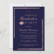 Celebre o formando virtualmente com este moderno, bonito chic e elegante faux rosa gold frame stripes convite festa de formatura em marinho azul editável. Convite para festa de formatura virtual perfeito, classe 2020, com um script de fonte elegante, adicione 3 de suas fotos favoritas no verso