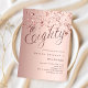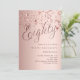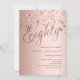Um convite moderno e na moda para uma festa de aniversário 80. fundo de gradiente rosa dourado e a palavra Oitenta escrita com letras elegantes e grandes em rosa dourado escuro. estrelas rosa douradas. Personalize e adicione um nome e detalhes da parte.