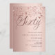 Um convite moderno e na moda para uma 60ª festa de aniversário. fundo de gradiente rosa dourado e a palavra Cinquenta escrita com letras elegantes de letras grandes em ouro rosa escuro. Estrelas rosa douradas. Personalize e adicione um nome e detalhes da parte.