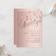 Um convite moderno e na moda para uma festa de aniversário 90. fundo de gradiente rosa dourado e a palavra Ninety escrita com letras elegantes grandes de guião em ouro rosa escuro. Decorado com estrelas rosa douradas. Personalize e adicione um nome e detalhes da parte.