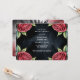 Um design floral simétrico com quatro grandes rosas vermelhas dispostas em um padrão quadrado contra um fundo preto escuro. Cada rosa é detalhado com múltiplas camadas de pétalas, criando uma cor de fogo profunda com gradientes sutis. Os rosas são posicionados nos cantos superior e inferior da moldura, com cada rosa com seu próprio conjunto de folhas e caules verdes. As folhas são detalhadas com veias visíveis e cor verde mais clara. Os rosas lançam sombras sutis sobre o fundo preto, criando profundidade. O fundo preto tem uma aparência texturizada, ligeiramente matizada, dando-lhe uma qualidade rica e profunda. A composição global cria uma estrutura decorativa equilibrada, com os rosas distribuídos uniformemente entre a parte superior e a parte inferior da imagem. O trabalho de arte tem um estilo de ilustração antigo ou clássico com linhas limpas e elementos botânicos detalhados.