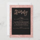 Esses convites de festa de solteira de na moda glam apresentam um visual falho de rosa dourado (note que não é uma falha real, mas uma imagem de brilho) e um quadro preto central, com um script manual de correspondência moderno. Há espaço para adicionar seu itinerário nas costas.