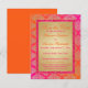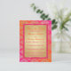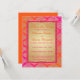 Este vibrante cartão de "save the date" para casamento inspirado em Sari indiano oriental em tons de rosa quente, fúcsia e laranja tem um padrão dourado em damaço com uma borda rosa com brilho falso (IMPRESSO, NÃO REAL). As cores ricas tornam-no perfeito para um casamento étnico, casamento muçulmano ou casamento indiano oriental. ****POR FAVOR, OBSERVE que nenhum dos elementos deste convite é elevado ou em relevo. Tudo é impresso plano. Este convite seria perfeito para uma cerimônia de casamento indiano, hindu, sânscrito ou muçulmano na primavera, verão, outono ou inverno, festa de noivado, aniversário ou outra festa de casamento. Além disso, se você redimensionar o convite, ou se você alterar as fontes, ou o tamanho da fonte, parte do design e/ou texto pode ser cortado. Tudo será impresso como você vê no seu monitor. Eu não verei seu convite, e a Zazzle NÃO irá corrigir nada (erros de digitação, alinhamento, etc.). O texto e o papel são todos personalizáveis. Se você precisar de ajuda com este convite, por favor me envie um e-mail ANTES de fazer seu pedido. Se você precisar de outros itens correspondentes ou gostaria de ter outros elementos de design adicion