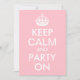 Áreas de texto personalizáveis em uma paródia rosa e branca "Manter calma e festa ligada" para uma festa de aniversário.