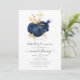 Rosas coloridos de marinho quic vintage primeiro convite de comunhão sagrado com sotaques de ouro e tipografia elegante de escrita manual.