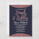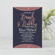 Elegante, chic e moderno falso papel impresso rosa dourado brilhante e bloco de cor rosa dourado recortado em texto de script de pincel de ouro azul marinho e falso rosa, convites de Bubble e Brunch. Este design clássico e sofisticado é perfeito para qualquer evento de na moda e tendências, incluindo casamentos e ocasiões cotidianas. Personalize com sua própria mensagem na frente, assim como um monograma personalizado inicial no verso. Todas as impressão de fotos.