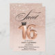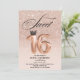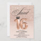 Convites Rosa moderno Dourado Glitter Drips Crown Sweet 16