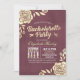 Modelo da festa de solteira da da da da placa de Chá de panela - Rosas de folha de ouro esplêndidos modernos e fundo vermelho brilhante da Borgonha Vintage. Um Design Perfeito Para O Seu Grande Dia! Todo Estilo De Texto, Cores, Tamanhos Podem Ser Modificados Para Ajustado Das Suas Necessidades.