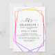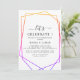 Este convite de celebração geométrico de aquarela em rosa ouro é perfeito para uma festa de noivado elegante, festa após casamento, aposentadoria, formatura ou qualquer evento feliz. O design caprichoso apresenta tons neutros de rosa claro em aquarela com belas formas geométricas em folha de ouro rosa e brilho.