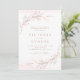 Rosa de ouro fantasma minimalista e convite de casamento rosa-pincelado, coroa elegante de folhas botânicas ilustrada manualmente, com detalhes do evento em um roteiro moderno e fonte clássica. Simples e luxo. Excelente para casamento clássico moderno, casamento formal simples, casamento botânico elegante. Veja todas as peças correspondentes na coleção.