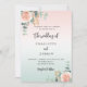 Um rosa de giz de ouro e fundo verde de gradiente. Decorados com ouro-rosa e flores cor-de-rosa escamoteadas, flores rosas e folhas de eucalipto de cor aquosa verde, galhos, verde e borras de ouro falsas. Personalize e adicione seus nomes e detalhes. Fundo: rosa ouro e gradiente verde.