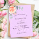 Um fundo violeta, colorido lilás. Decorados com ouro-rosa e folhas de eucalipto cor-de-rosa-esbranquiçada, flores de rosa e cor-de-rosa-esbranquiçada, galhos, verde e borras de ouro. Personalize e adicione seus nomes e detalhes do casamento.