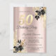 Convites Rosa preto Glitter Drips Rosa Dourado 50º aniversá