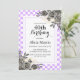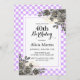 Este elegante convite para o aniversário da flora apresenta flores douradas e rosa pretas com folhas dispostas no pano de fundo branco e mauve.