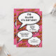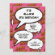 Um livro de banda desenhada, legal e moderno, rosa, inspirou um convite de aniversário que coloca o wham, zap, pow no evento de celebração de qualquer super-herói. O reverso apresenta uma bolha de fala e uma mensagem correspondentes em um padrão de bolinhas rosa de quadrinhos que você pode substituir por sua própria imagem ou foto. Projetado por Thisnotme©