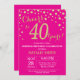 Surpreenda o aniversário de 40 anos Invitation com fundo de diamante rosa quente e brilhante Dourado. Dourada Confetti. Aniversário Adulto. Homens ou Mulheres Aniversário. Para mais personalização, clique no botão "Personalizar" e use nossa ferramenta de design para modificar este modelo.