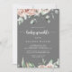 Este clássico convite à aspersão de cinzas florais rosa rosa rosa rosa é perfeito para um chá de fraldas rústico. O design apresenta elegantes rosas rosa poeirentas e poeirentas e folhagem verde, perfeitamente reunidas em belos buquês com fundo de cinza.