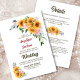 Convide seus amigos e entes queridos para o seu casamento com este convite rústico com girassóis vibrantes, rosas cor-de-rosa delicadas e torres de galhos de eucalipto para ajudar a compartilhar sua alegria no seu dia especial. Projetado tendo em mente o orçamento, mais detalhes podem ser incluídos no verso do convite, incluindo os detalhes do local de recepção, informações de RSVP para garantir que os convidados confirmem sua presença no dia especial e quaisquer outros detalhes que os seus convidados possam exigir.