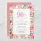 Convites Rosa rosa e Hydrangea 90 Floral Aniversário