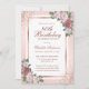 Convite de aniversário floral, cor-de-rosa-pincelado e rosa, elegante, com flores rosas e cor-de-rosa pincelado e verde, definindo os detalhes da festa de aniversário. Enche o convite de aniversário floral. Convite de aniversário de ouro e rosa. Convite de aniversário de ouro rosa e rosa. Convite de aniversário rosa. convite de rosa de aniversário. Personalize facilmente esta modelo a qualquer festa de aniversário.
