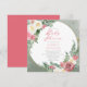 Cor-de-rosa elegante e rosa-rosa e branca com design de texto de guião verde-sábio "Chá de fraldas" com estrutura circular de linhas douradas geométricas.