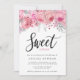 Belo convite de aniversário floral Sweet 16 com ouro falso rosa e elementos de brilho prateado.
