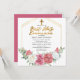 Rosa elegante e elegante e rosa-rosa branca floral com design de texto de guião verde-sábio "Primeira Comunhão" com estrutura geométrica de linhas em tons de ouro.