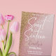 Este doce cartão de 16 anos apresenta uma glamourosa e rosa dourada festa, cheia de sotaques brilhantes. Bonito tipografia. É uma noite de diversão, amigos, e memórias inesquecíveis. Salve a data e prepare-se para comemorar no estilo.