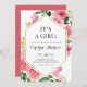 É uma garota! Bonito convite para chás de fraldas florais. Apresenta cor-de-água rosa e rosas vermelhas, folhagem e estrutura falsa de folha de ouro. Você pode alterar o plano de fundo do bolinhas para qualquer imagem desejada. Este convite floral cor-de-rosa é perfeito para uma primavera.