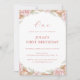 Rosa Rosa Rosa Rosa Rosa Primeiro Convite de Aniversário tem uma rosa-rosa-d'água. Personalize o design com os detalhes da festa de aniversário do seu filho.