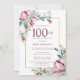 O Convite de aniversário Elegante 100º modelo apresenta uma estrutura dourada e dois arranjos de rosas cor-de-rosa esbranquiçadas. Todo o texto é editável. Este item faz parte da Exquisite Pink Mauve Floral Collection. Ele contém modelos que você pode usar para criar um conjunto de convites exclusivo e suprimentos de festas.
