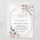 Esta rosa rosa poeirenta geométrica clássica, é um convite para uma menina é perfeito para um chá de fraldas rústico ou borrão. O design apresenta rosas poeirentos elegantes e cor d'água e folhagem verde, perfeitamente reunidos em belos buquês, enfeitando uma encantadora estrutura geométrica.