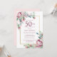 O modelo Elegante 50º Convite de aniversário apresenta uma estrutura dourada e dois arranjos de rosas e peônias cor-de-rosa-rubor. Todo o texto é editável. Este item faz parte da Exquisite Pink Mauve Floral Collection. Ele contém modelos que você pode usar para criar um conjunto de convites exclusivo e suprimentos de festas.