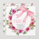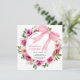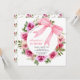 O convite de aniversário de uma menina doce apresenta uma flor de rosa de aquarela com um arco rosa grande.