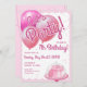 Celebre em estilo com este convite de aniversário feminino rosa. Adotar a magia de um mundo caprichoso, onde glamour e diversão se entrelaçam com balões, pérolas, bolo e apenas um toque de brilho. Perfeito para a moça da moda!