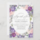 Elegante convite de revelação de bebê com flores violeta e ameixa com tons de verde sálvia e rosa rosado projetado para ser personalizado rápida e facilmente para os detalhes do seu evento.