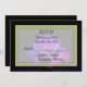 Um RSVP elegante para casamentos ou outros eventos. Uma bela fotografia de uma rosa roxa, azul e rosa em um fundo preto iluminado por um holofote que cria uma iluminação espetacular que realmente destaca a beleza desta flor, que está coberta de delicadas gotículas de água. Uma borda dourada com uma sobreposição semi-transparente no centro para escrita legível fácil.