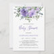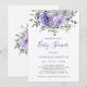 Estes convites para chuveiros de bebês apresentam um design floral de aquarela moderno com rosas roxos empoeirados e folhagem de folhas de eucalipto. Itens de chá de fraldas correspondentes também estão disponíveis.