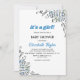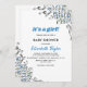 Este elegante convite para chás de fraldas florais é perfeito para um moderno chá de fraldas floral de verão. A design romântica apresenta ilustração simples de flores azuis com elegante tipografia preto e azul sobre fundo branco.