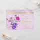 Um elegante convite de aniversário rosa rústico e floral roxo 60º com texto dourado.