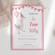 Apresentando Dois Bobos — a maneira mais bonita de celebrar o segundo aniversário da sua garotinha! Este convite encantador apresenta um ganso bobo solteiro com um arco rosa e um balão, perfeito para um tema de festa doce e brincalhão. Personalize com os detalhes do seu partido e prepare-se para honrar e festejar!